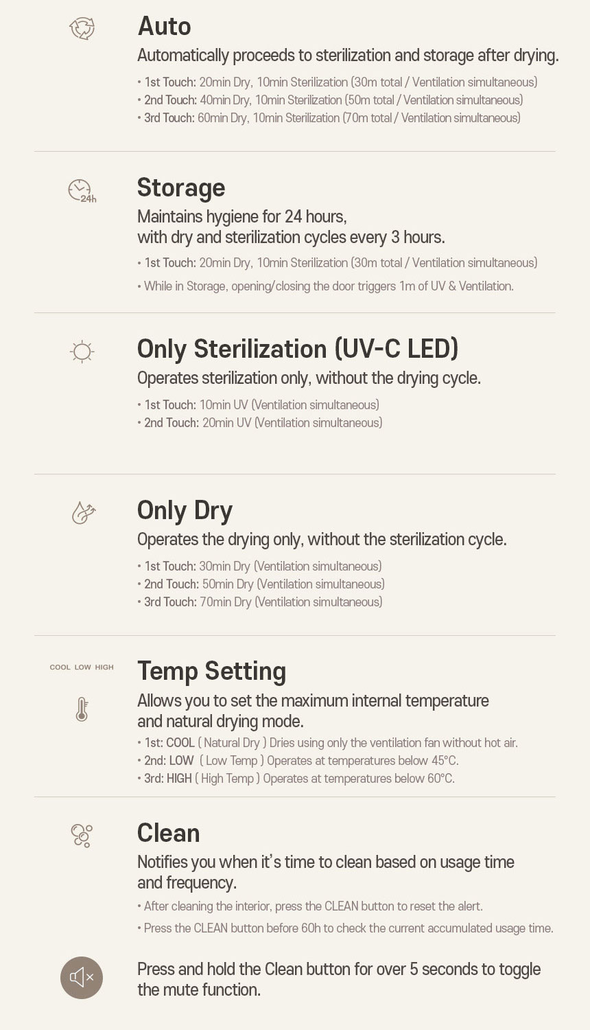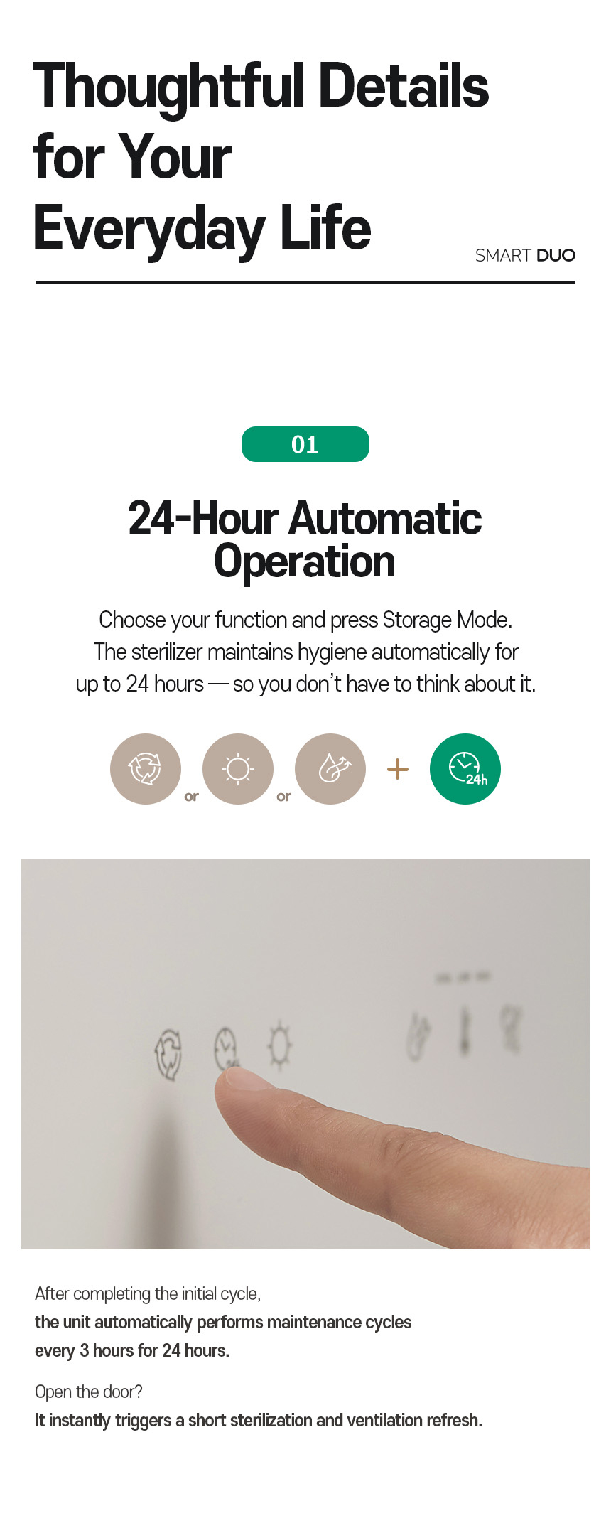 πΌ 24-Hour Automatic Storage Mode: Always have a clean bottle ready! Automatically runs a sterilization and ventilation cycle every 3 hours for up to 24 hours. Plus, opening and closing the door triggers a quick 1-minute UV refresh!