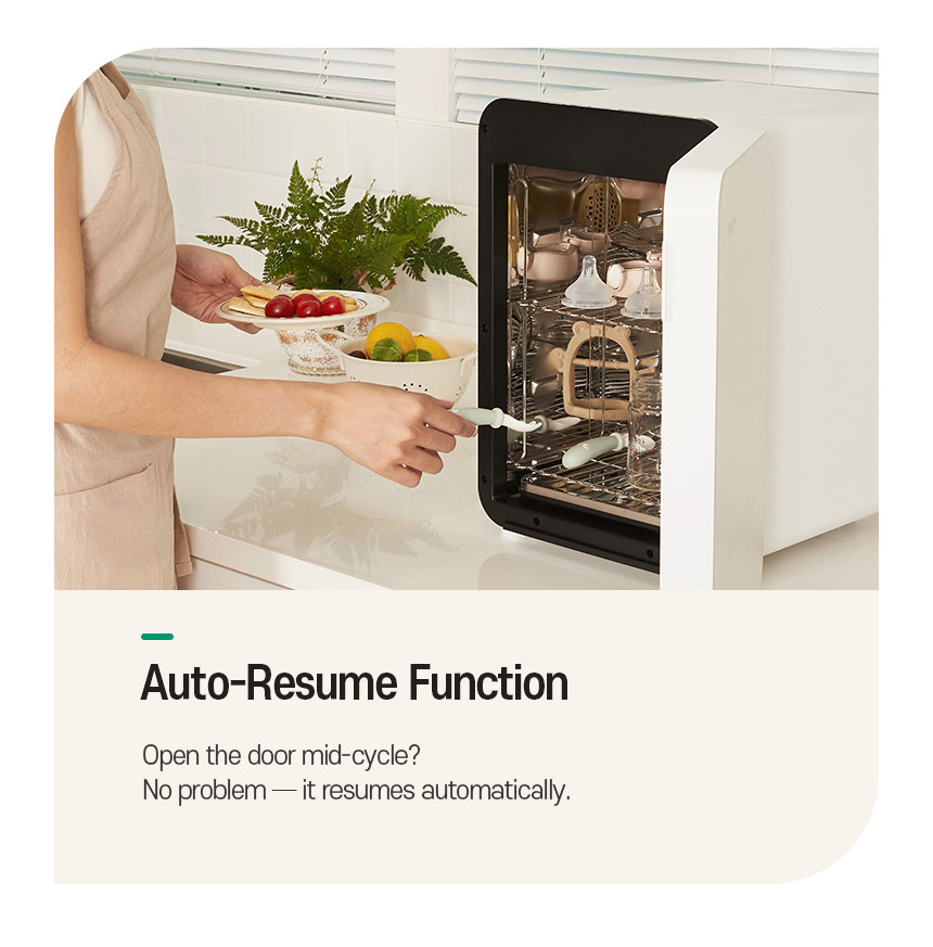 π Smart Auto-Resume: Need to grab a bottle mid-cycle? Open the door with no worriesβthe sterilizer will automatically resume its operation the moment you close it.